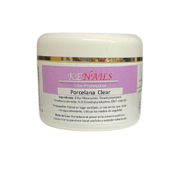 Polvo acrílico clear profesional que se endurece al aire en combinación con el líquido acrílico para realizar uñas de porcelana.