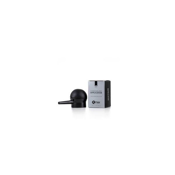 El aplicador Kmax, es un pulverizador para la aplicación de las fibras capilares K-Max, con su uso se consigue una aplicación mucho más natural y precisa, sobretodo en la zona frontal del cabello o en las zonas donde hay muy poco cabello. Las microfibras de keratina saldrán más pulverizadas y dosificadas, como resultado estas se depositaran en el cabello de una forma más natural.