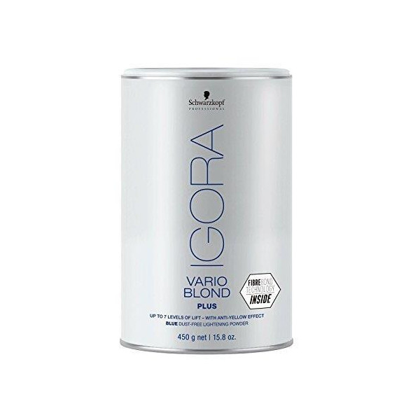 Igora Vario Blond Plus es una versión más nueva del producto, mejorada por la fórmula Fiber Bond. Proporciona hasta 7 niveles de decoloración. Se puede usar para mechas o para aclarar todo el cabello.