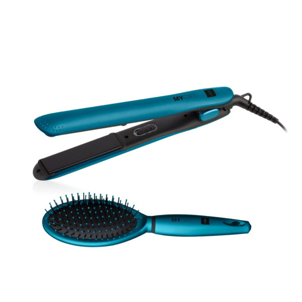 MYGIFT estuche con plancha y cepillo profesional: una idea de regalo perfecta para ti o para tus seres queridos. El kit incluye una plancha de pelo de turmalina y un cepillo profesional desenredante en un elegante colorazul. Ideal para quienes desean un peinado impecable y una rutina de belleza completa.